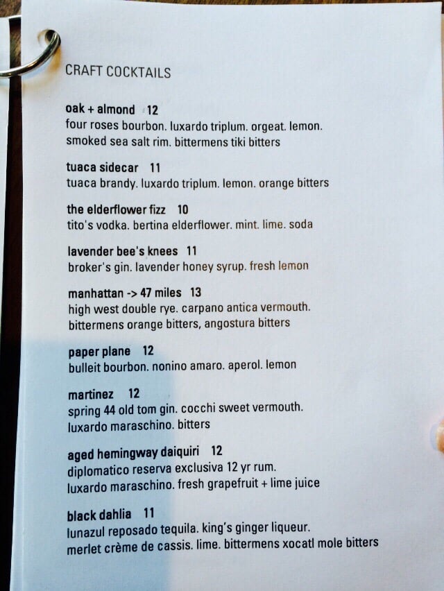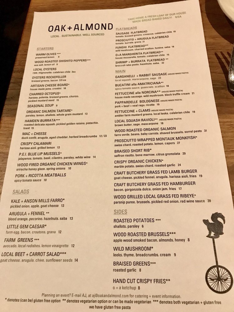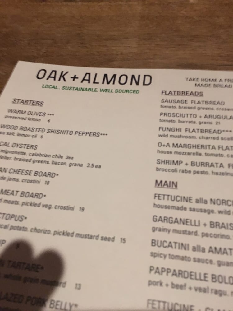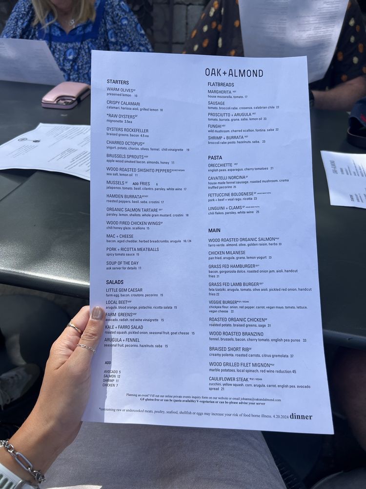 Oak + Almond Menu (Update 2025)